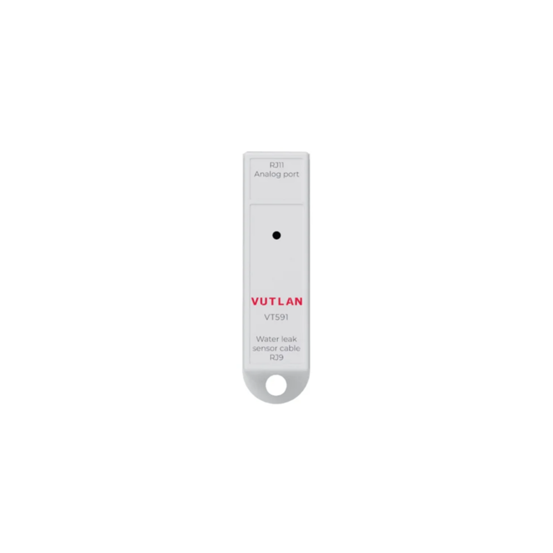 Vutlan VT591 Water leak sensor is designed to detect water leaks by measuring the resistance drop in the connected WLC Leak Detection Cable. This sensor requires a WLC Leak Detection Cable, which must be ordered separately and is available in a variety of lengths. This plug-and-play sensor easily connects to any analog port of Vutlan monitoring devices. The maximum amount of sensors can be extended using the VT408 / Sensor extension unit.